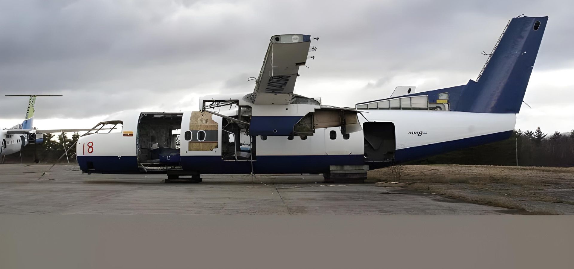 The aircraft has been carefully disassembled and dismantled for parts reuse, recycling...